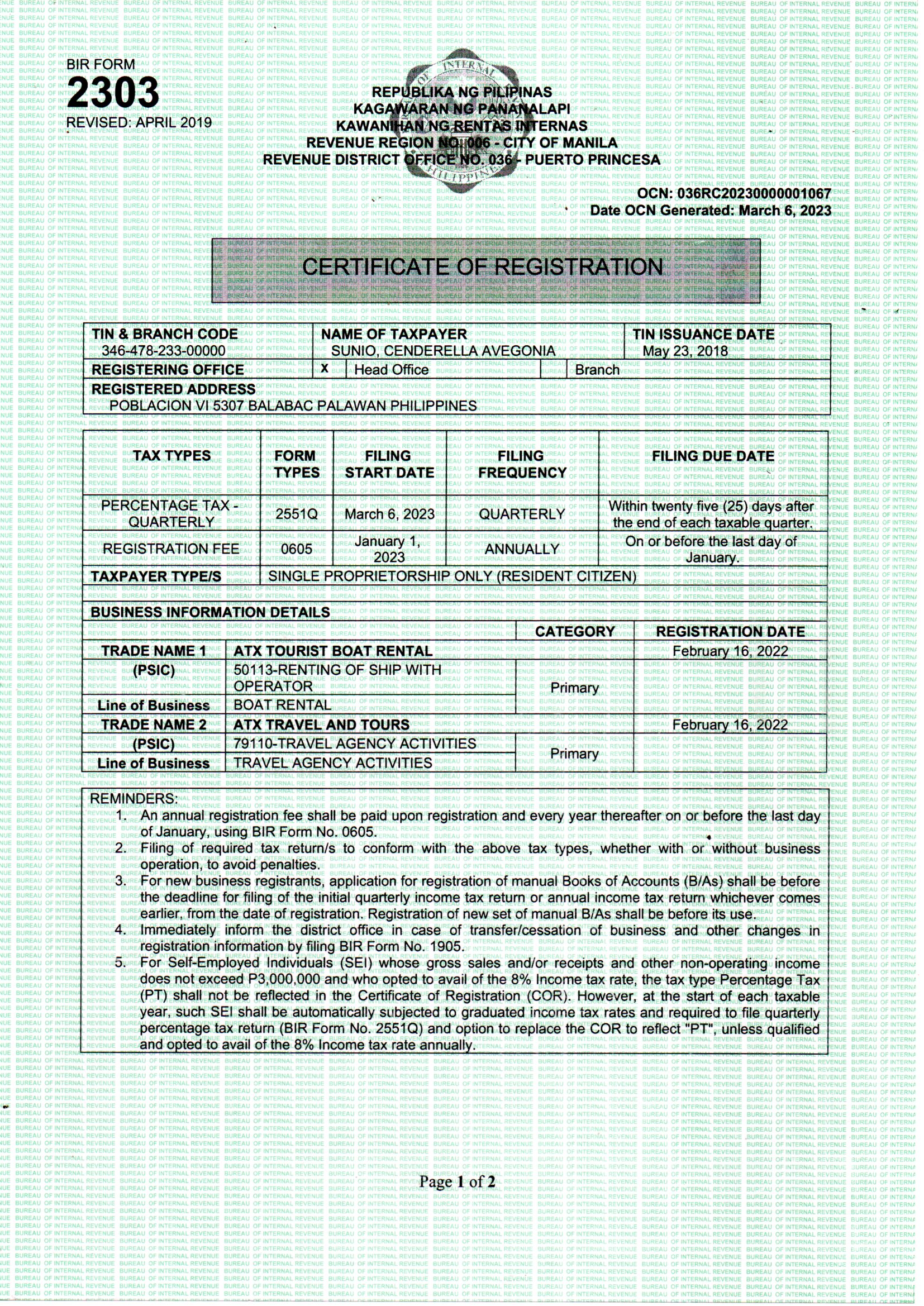 Bureau of Internal Revenue Registration